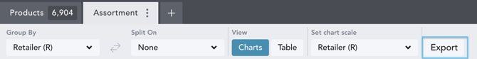The raw Assortment chart data from charts and tables can be exported and emailed to you in Excel format. Ensure your workbook is saved, and then click ‘Export’ at the top of your chart controls.