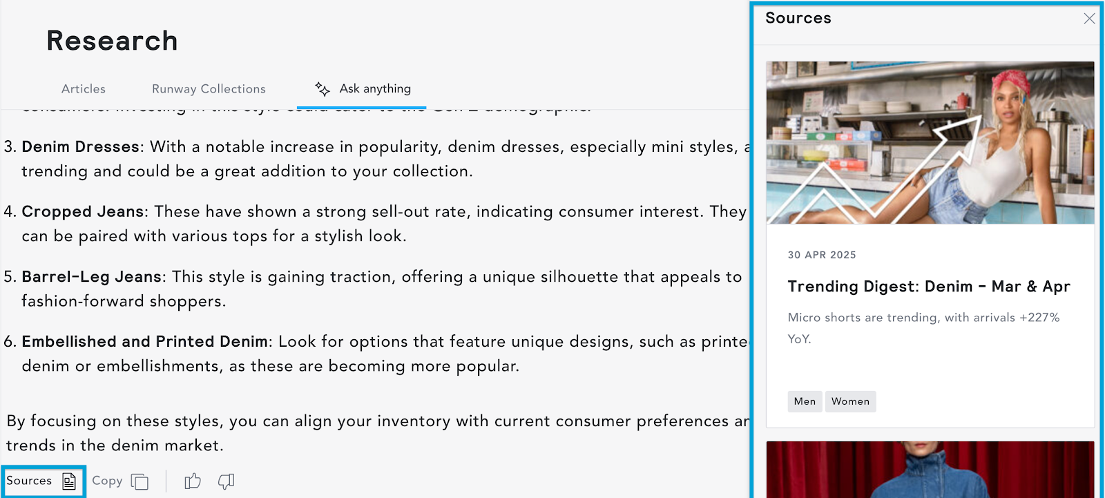 Once the Assistant has responded to your query, you can view the supporting articles and sources behind the AI-generated results. This allows you to explore the information in more detail and expand your understanding.