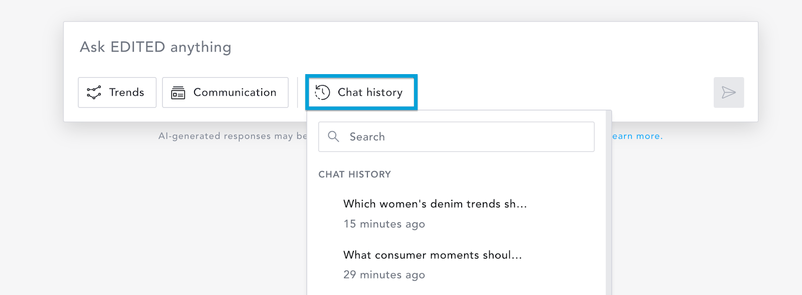 Click the Chat history button to view and go back to all the queries you have entered previously.